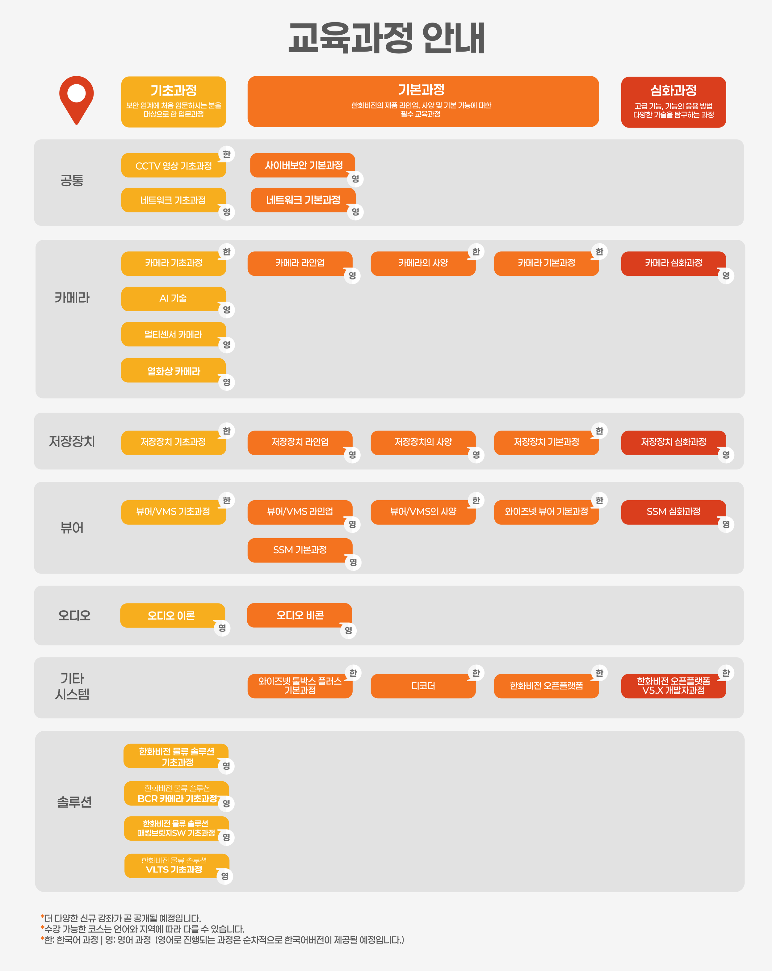 Incorporated language and region indicators for English, Korean, Japanese, and Spanish courses