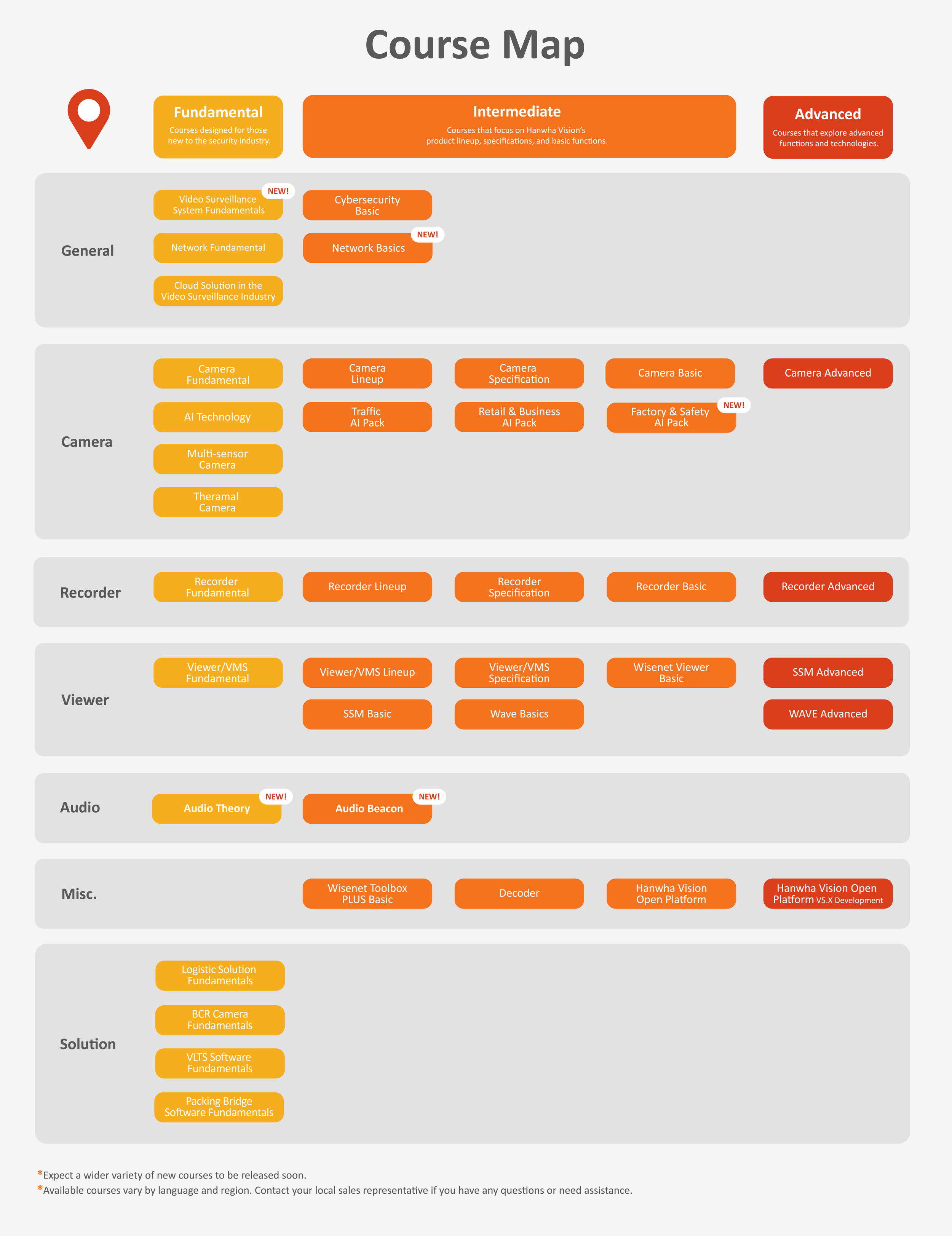 The original course map was a plain Excel document that was difficult to read, visually unappealing, and hard to update. Learners and administrators struggled to quickly identify which courses were available in each region or language, reducing clarity and efficiency.